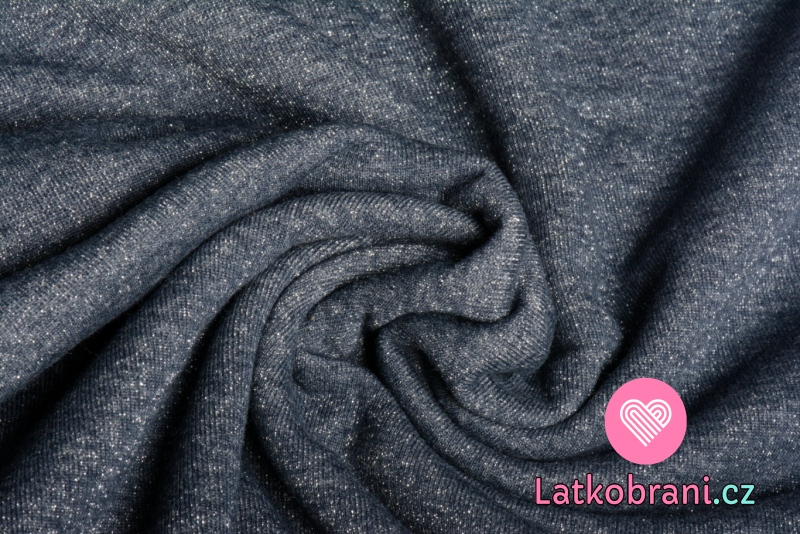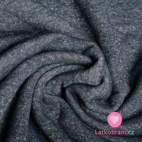 Teplákovina počesaná námornícky modrá s trblietavými nitkami