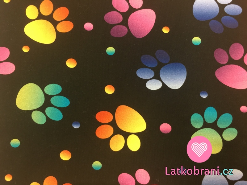 Teplákovina potlač farebné labky s bodkami