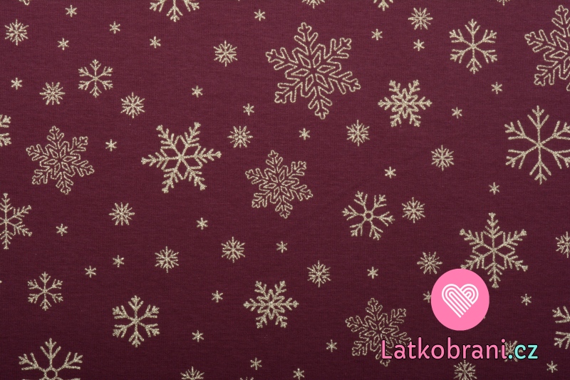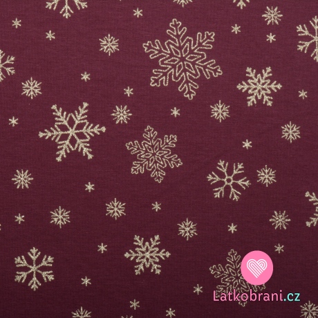 Teplákovina potlač trblietavé snehové vločky na bordovej