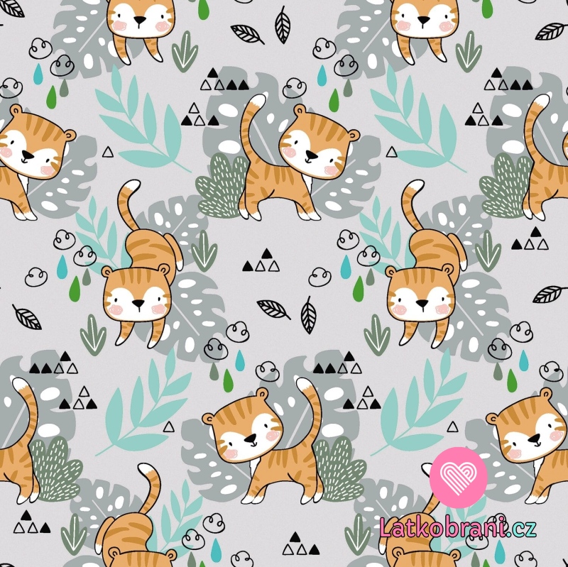 Úplet potlač malý tigrík medzi listami na šedej