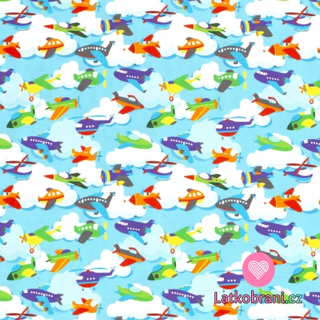 Úplet potlač lietadla na modrej