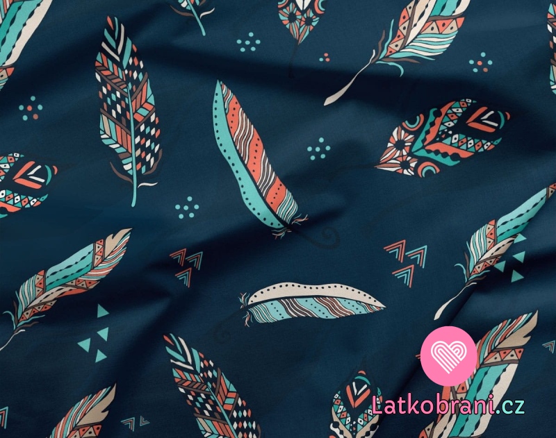 Úplet potlač oranžovotyrkysová pierka na tmavo modré