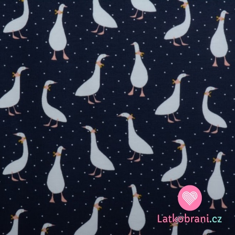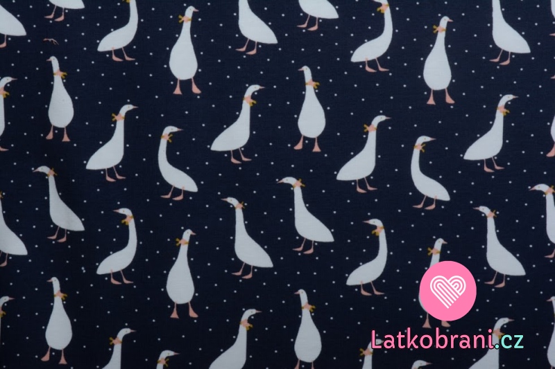 Úplet potlač husi medzi bodkami na tmavo modré, BIO