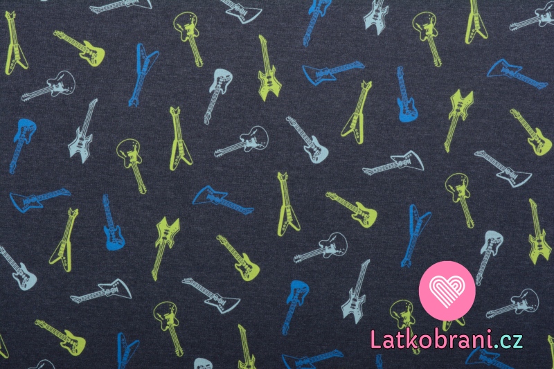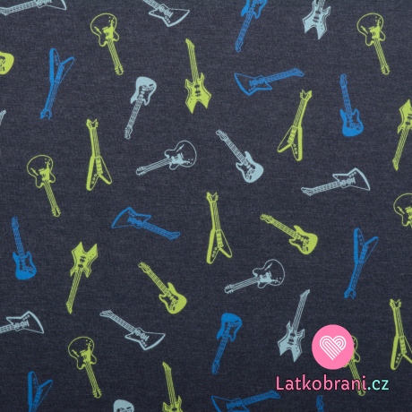 Úplet potlač gitary na tmavo modré