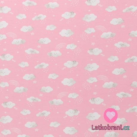 Úplet potlač jarné mráčky na baby ružové