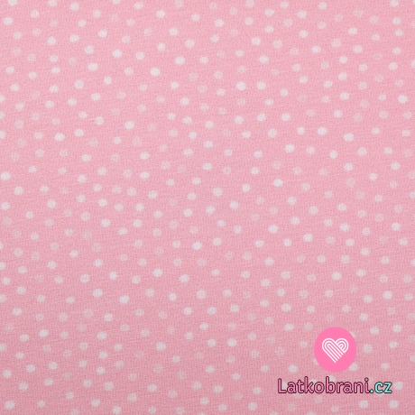 Úplet potlač malé biele bodky na baby ružové