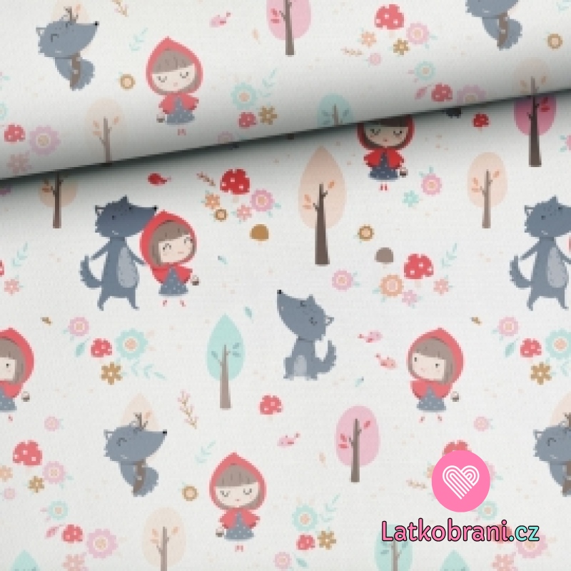 Bavlnené plátno Červená Karkulka a vlk na bielej