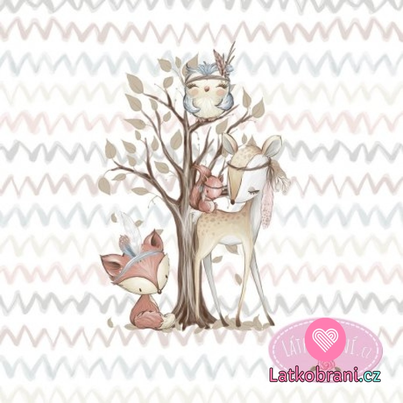 Bavlnený panel lesné zvieratká pri strome veľký 100x158 cm