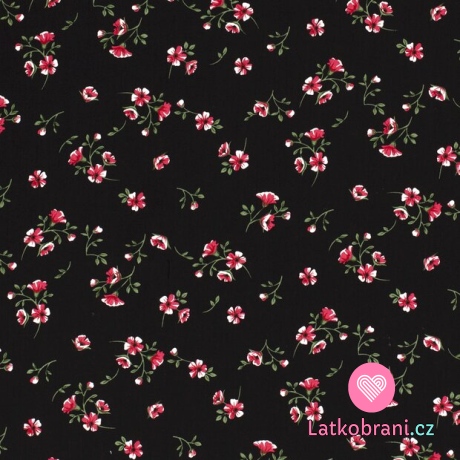 Viskóza potlač drobné kvety na čierne