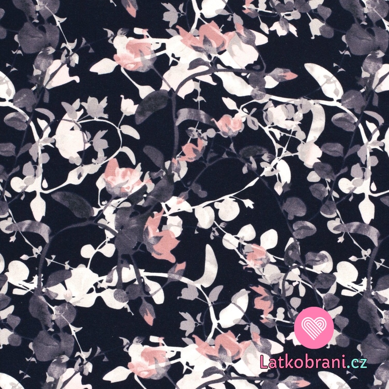 Viskózovej úplet potlač magnólia na navy modré