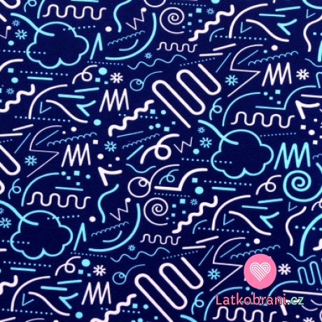 Bavlnený úplet geometrie na tmavo modré