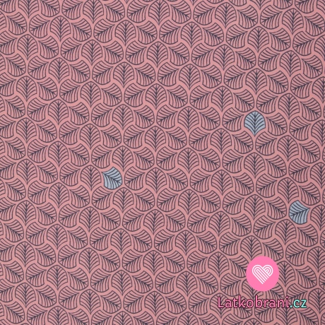 Viskóza potlač modrej lístočky na ružové