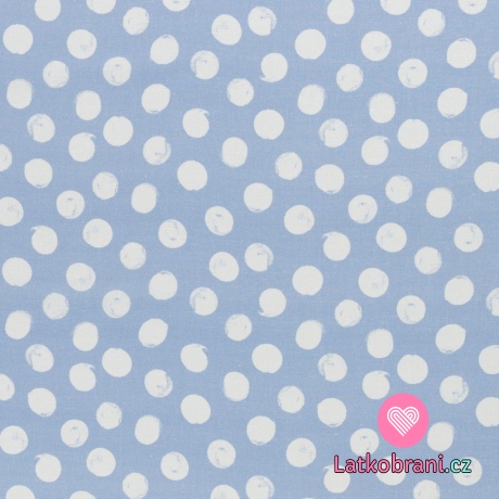 Viskóza s prímesou ľanu biele bodky na nebesky modrej