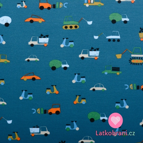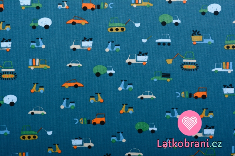 Úplet potlač stavebné vozidlá na petrolejovo modrej, BIO