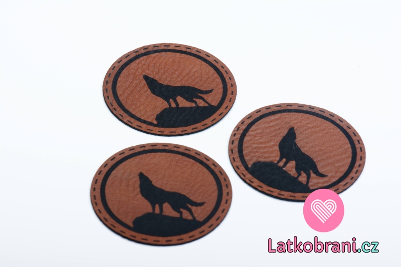 Štítok na oblečenie vlk, okrúhly koženkový