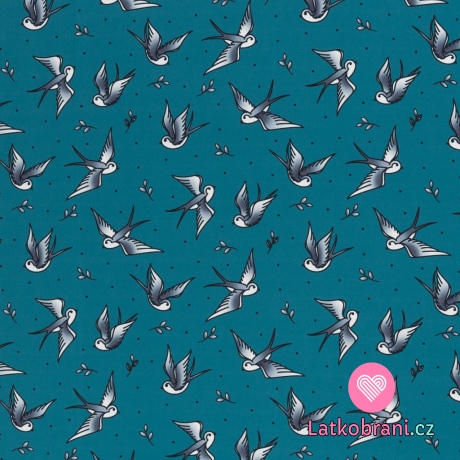 Softshell potlač lastovičky na petrolejovo zelenej