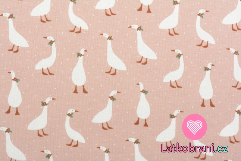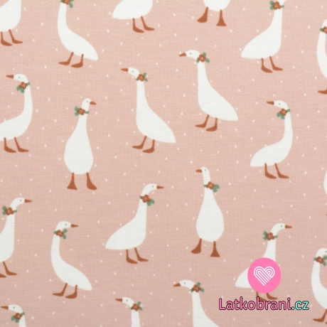 Úplet potlač husi medzi bodkami na ružové, BIO