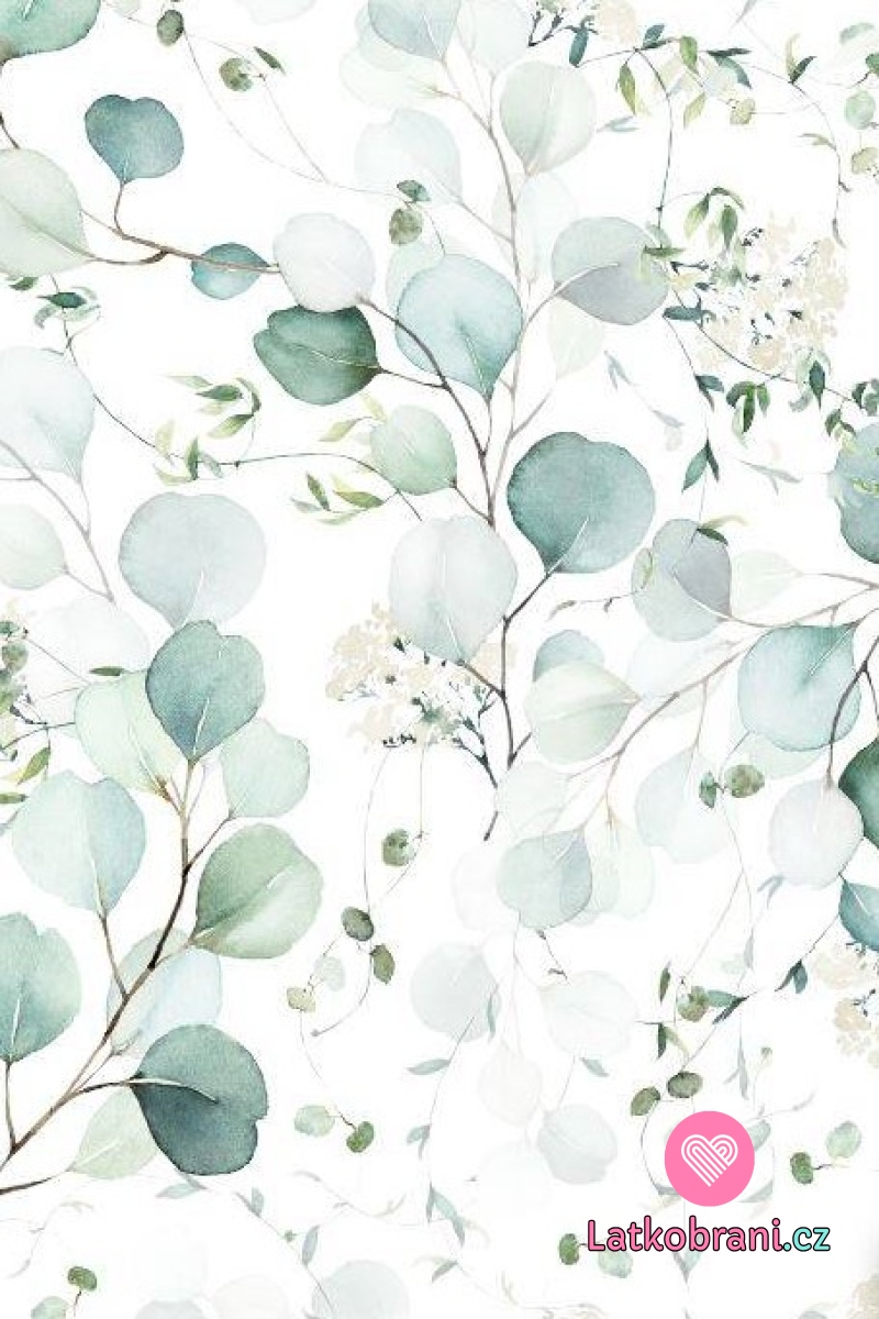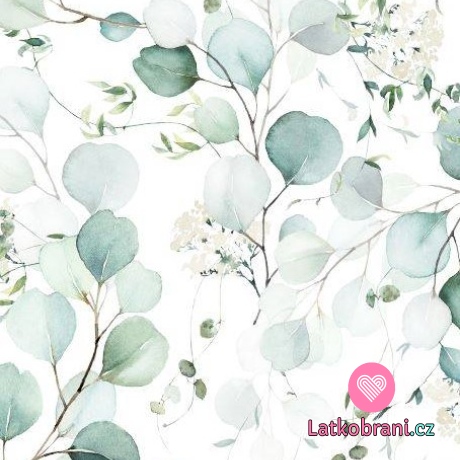 Teplákovina potlač eukalyptus na biele