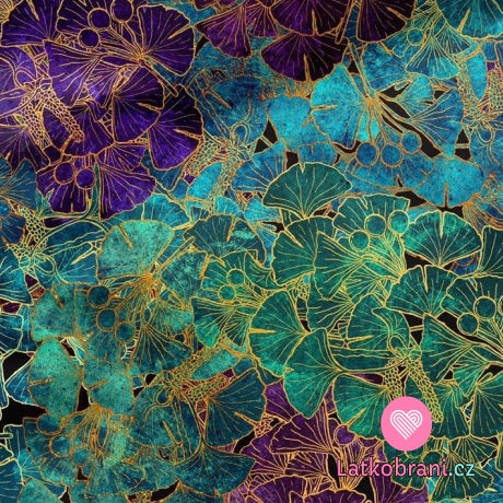 Teplákovina potlač ginkgo biloba v modro - fialové