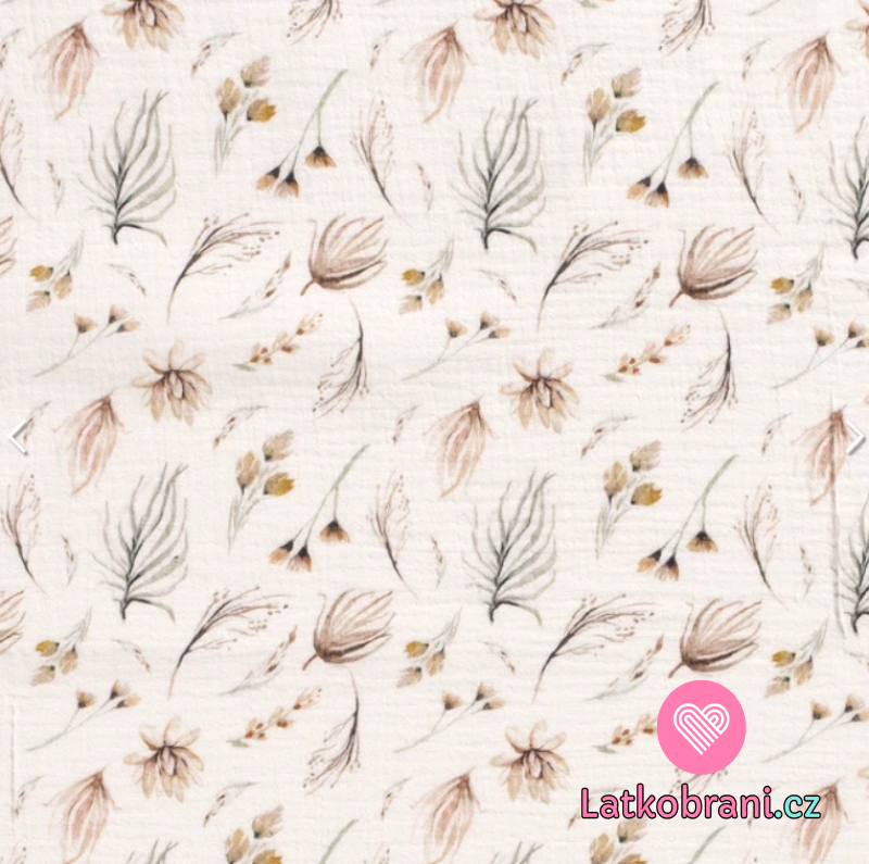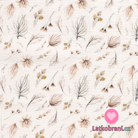 Dvojitá gázovina / mušelín vetvičky a kvety na biele
