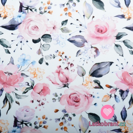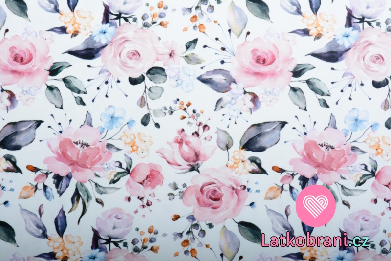 Úplet potlač rozkvitajúce ruže na biele