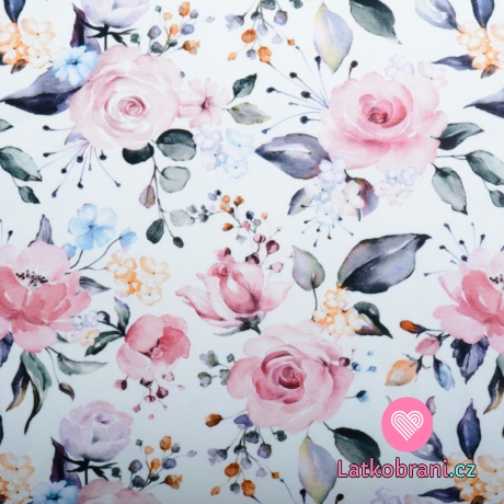 Teplákovina potlač rozkvitajúce ruže na biele