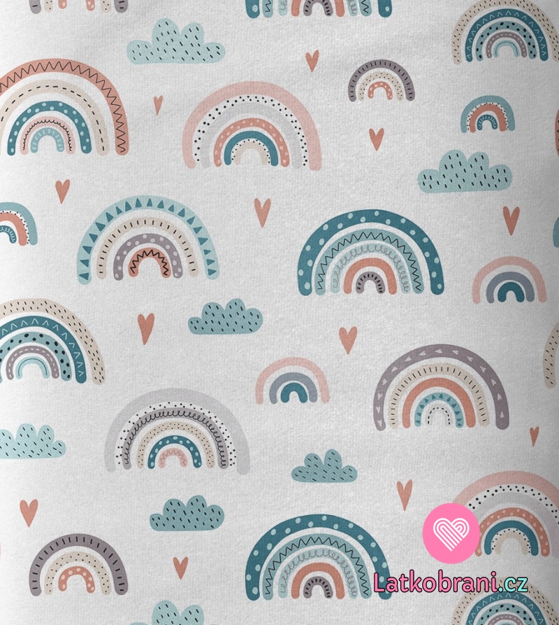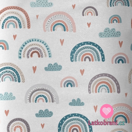 Bavlnené plátno veselá dúha medzi mráčky a srdiečkami