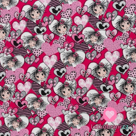 Úplet potlač slečna v srdiečku na ružové