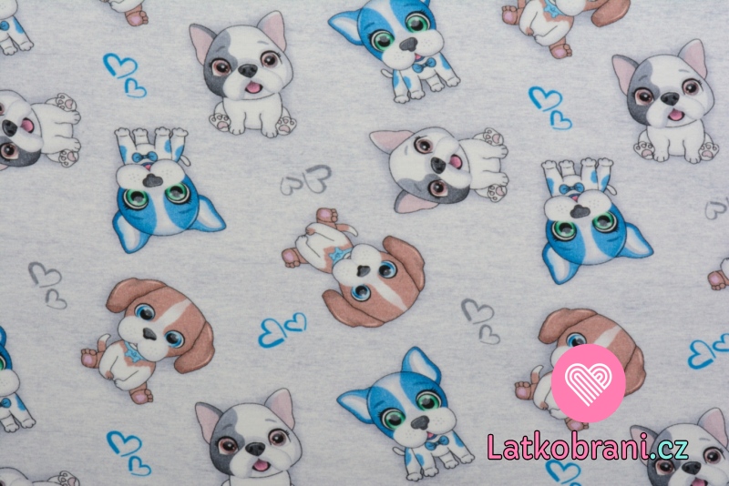 Úplet potlač roztomilá šteniatka na šedom melé