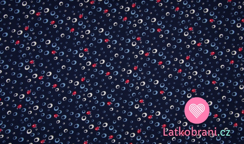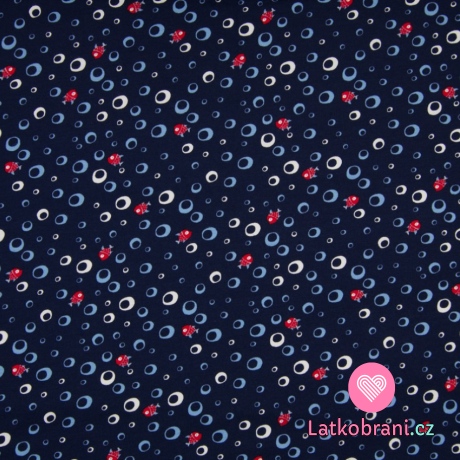 Úplet potlač bublinky a rybičky na námorníckej modrej