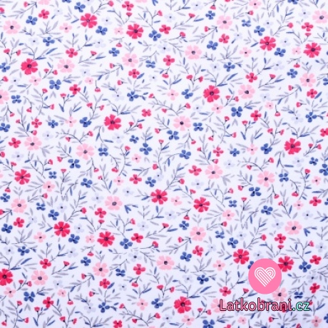 Bavlnený úplet ružová nevädza na biele