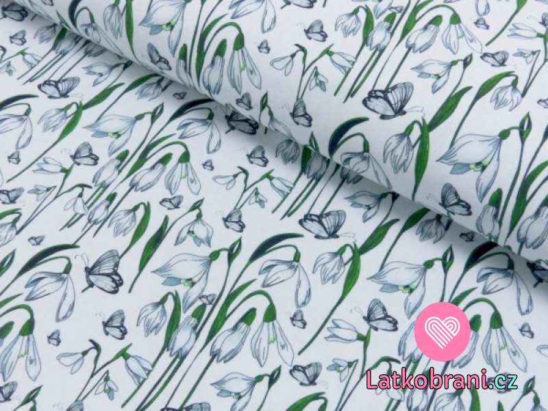 Úplet potlač snežienky na biele