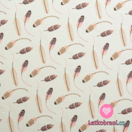 Úplet potlač rozhádzané pierka na zaprášené biele