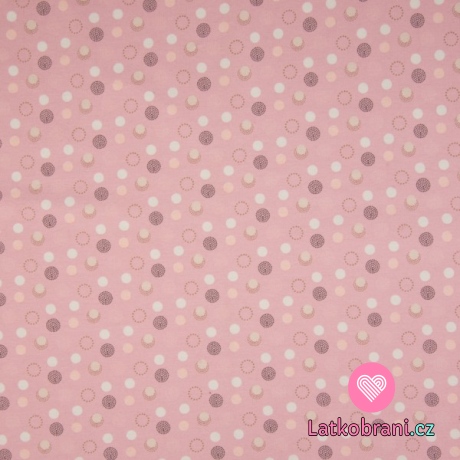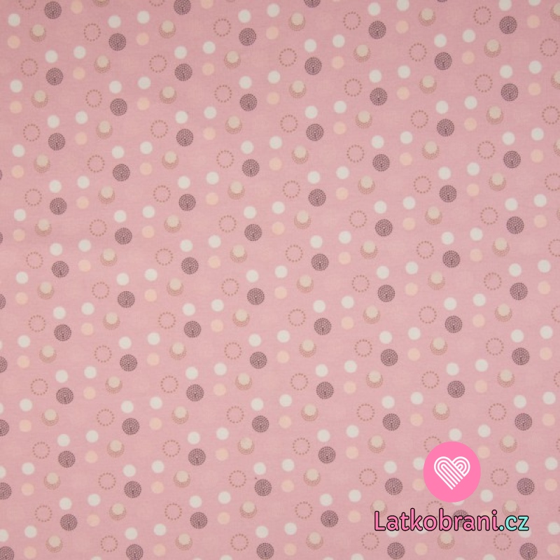 Úplet potlač jemné farebné bodky na ružové