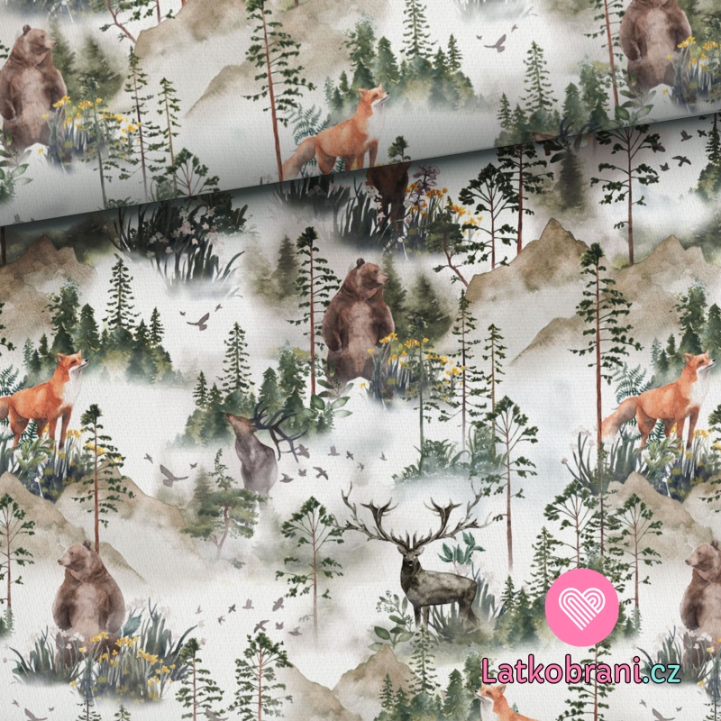 Teplákovina potlač zvieratká v hmlistom lese