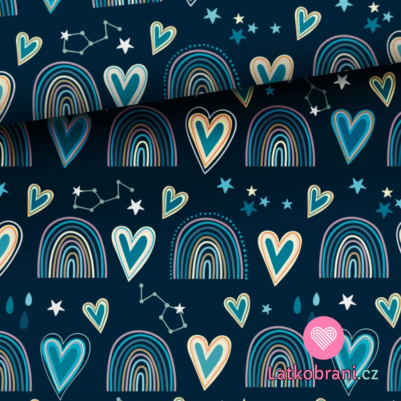 Teplákovina potlač dúha medzi srdiečkami a nočnou oblohou