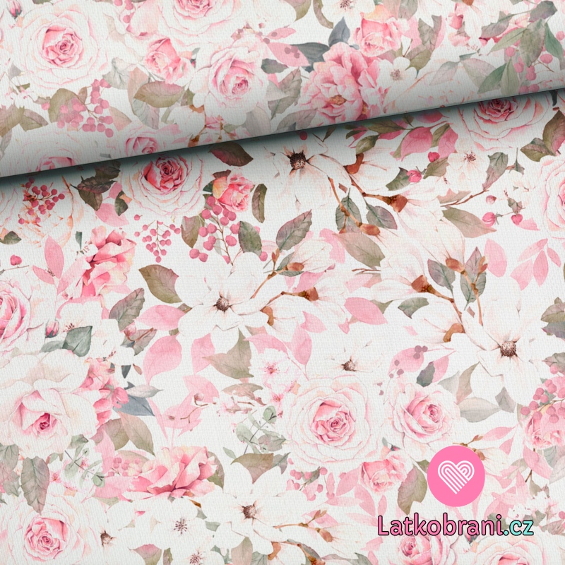 Teplákovina potlač bohaté ruže na biele