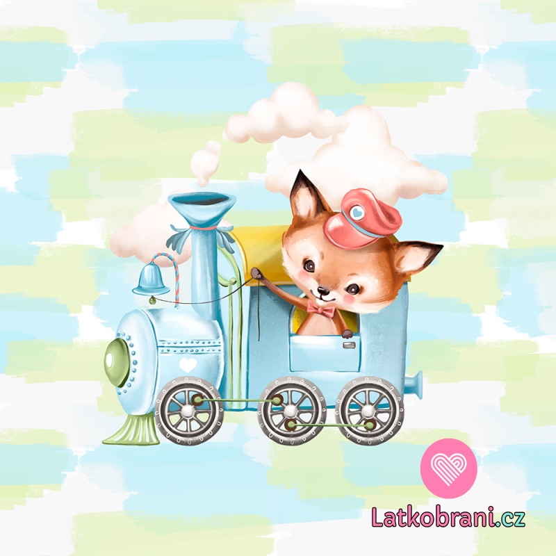 Panel lišiak v lokomotíve na modrom podklade 40x50 cm