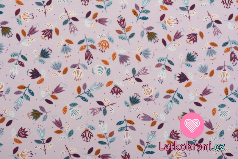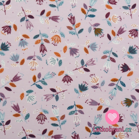Teplákovina potlač maľované tulipány na svetlo fialovej, BIO