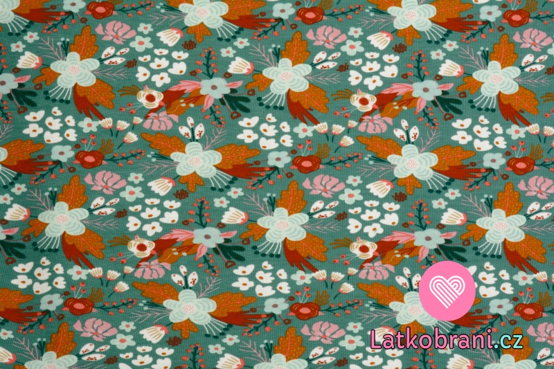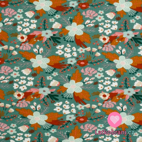 Úplet potlač kvety do modra na modro azúrovej, BIO