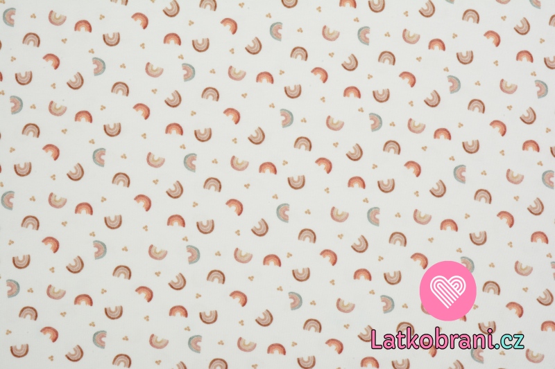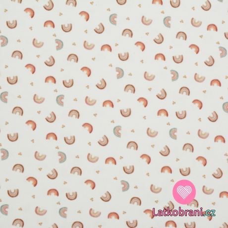 Úplet potlač prírodné dúhy a bodkami na biele, BIO