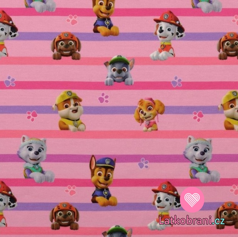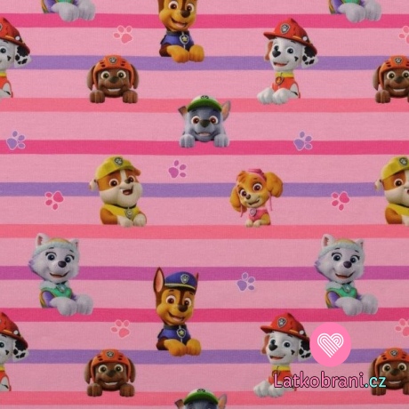 Úplet potlač "vykukujúce" hrdinovia z Tlapkové patroly na ružovo-fialových prúžkoch