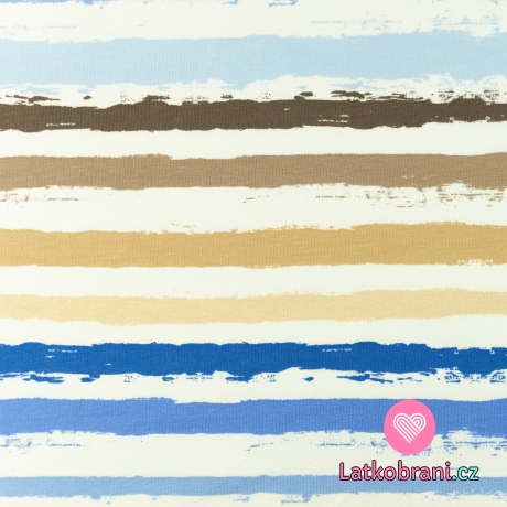 Úplet potlač maľované prúžky do modra na bielej