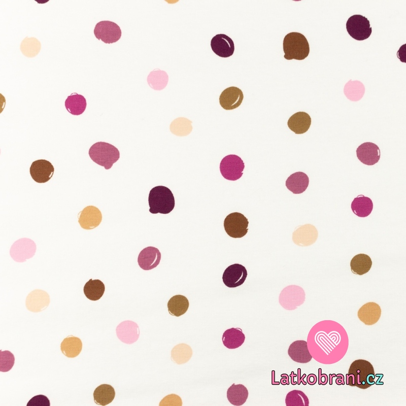 Úplet potlač nepravidelné bodky do ružova na bielej