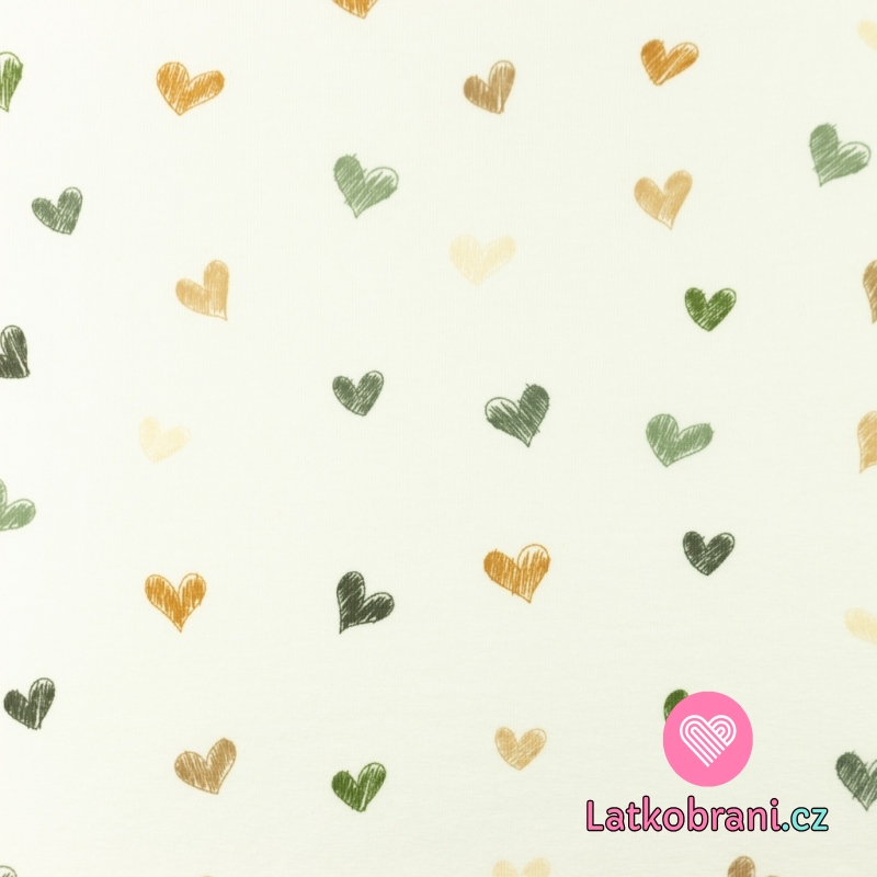 Úplet potlač maľovaná srdiečka do zelena na bielej