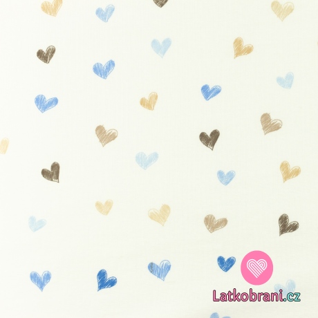 Úplet potlač maľovaná srdiečka do modra na bielej
