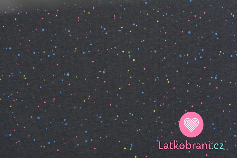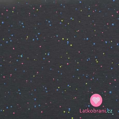 Teplákovina potlač nepravidelné neónové nopky na tmavo šedé