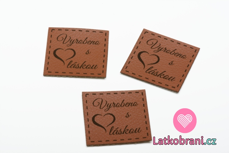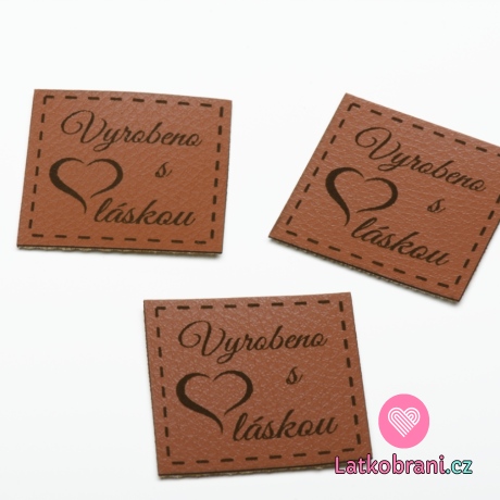Štítok na oblečenie "Vyrobené s láskou", koženkový, imitácia kože