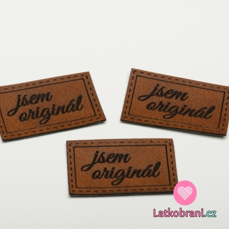Štítok na oblečenie "som originál", koženkový, hladký povrch