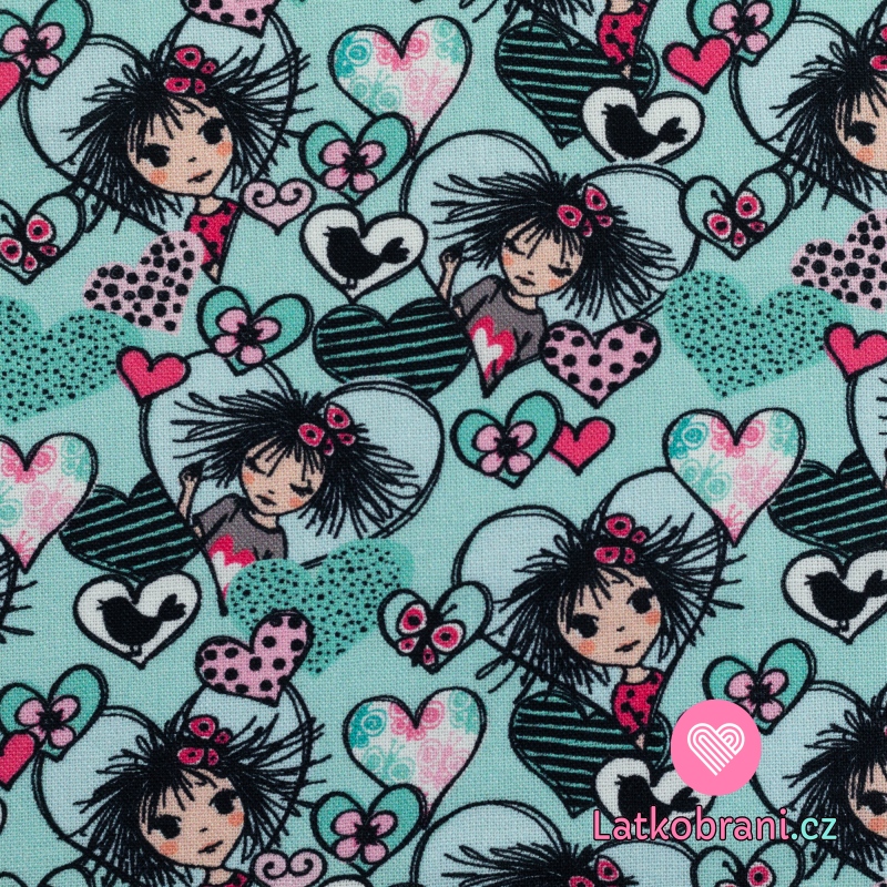 Úplet potlač strapatá baba v srdiečku na mintovou